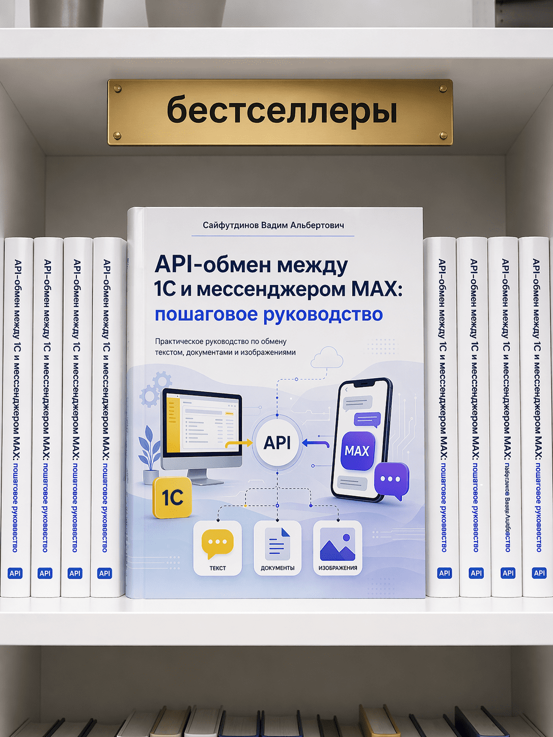 🚀 НОВАЯ КНИГА: «API-обмен между 1С и мессенджером Макс. Пошаговое руководство.»