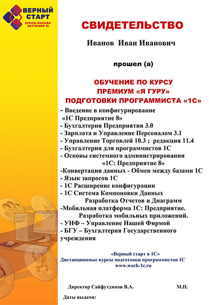 Премиум курс программирования в 1С